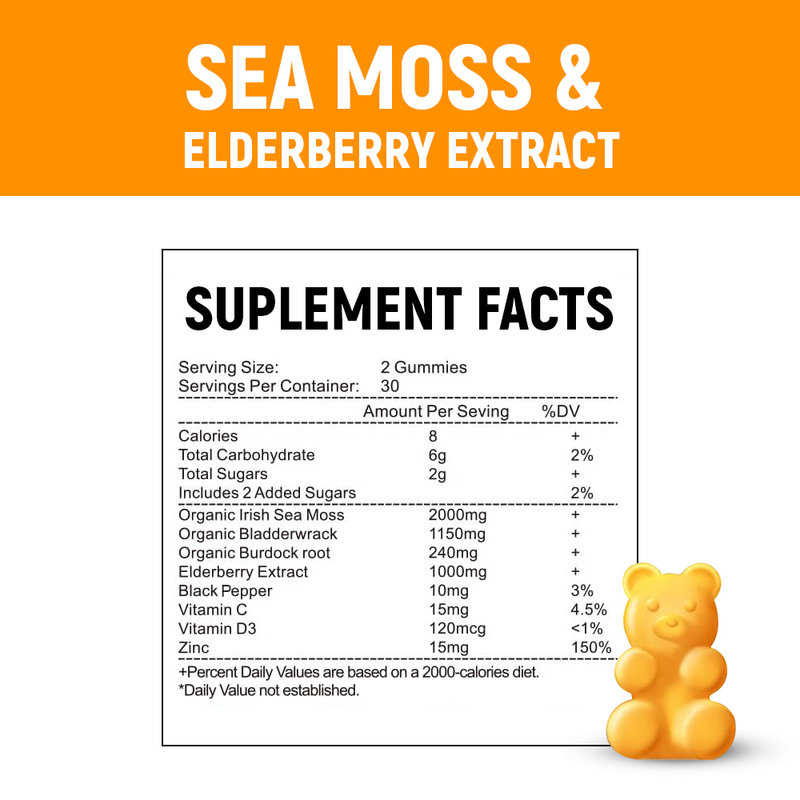 Морской мох и эльдерберри экстракт резинки Поставщик Производитель Поддержка иммунной системы