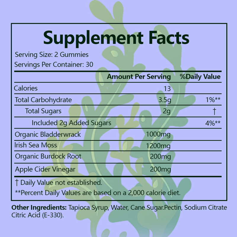 Ирландский морской мёс, органический мочевой пузырь, органический корень бурдоки, яблочный уксус