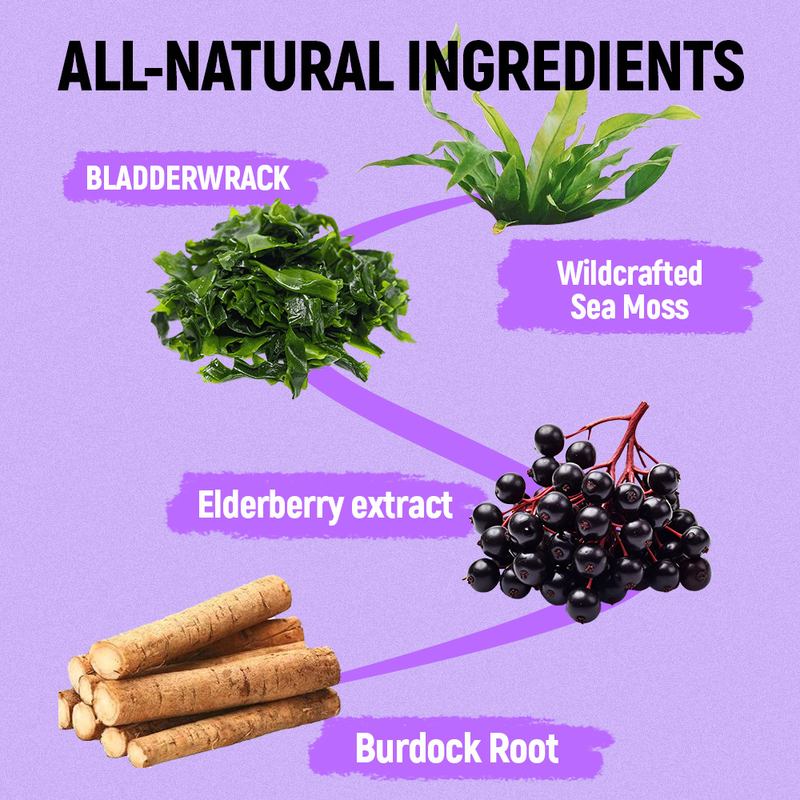 Морские водоросли, фукус пузырчатый, корень лопуха, экстракт бузины, цинк, витамин С