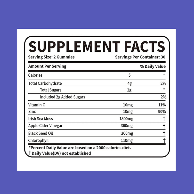 Ирландский морской мох, яблочный уксус, цинк, витамин С, хлорофилл, масло черных семян