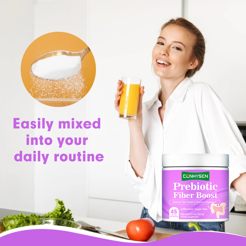 Наша специализированная пребиотическая смесь объединяет растворимые волокна из различных природных источников, включая инюлин и FOS, специально разработанные для лечения запоров и вздутия живота.Клинические исследования показывают, что эта уникальная формула увеличивает частоту дефекации на 45%, снижая при этом дискомфорт от вздутия живота благодаря оптимизированным процессам ферментации..